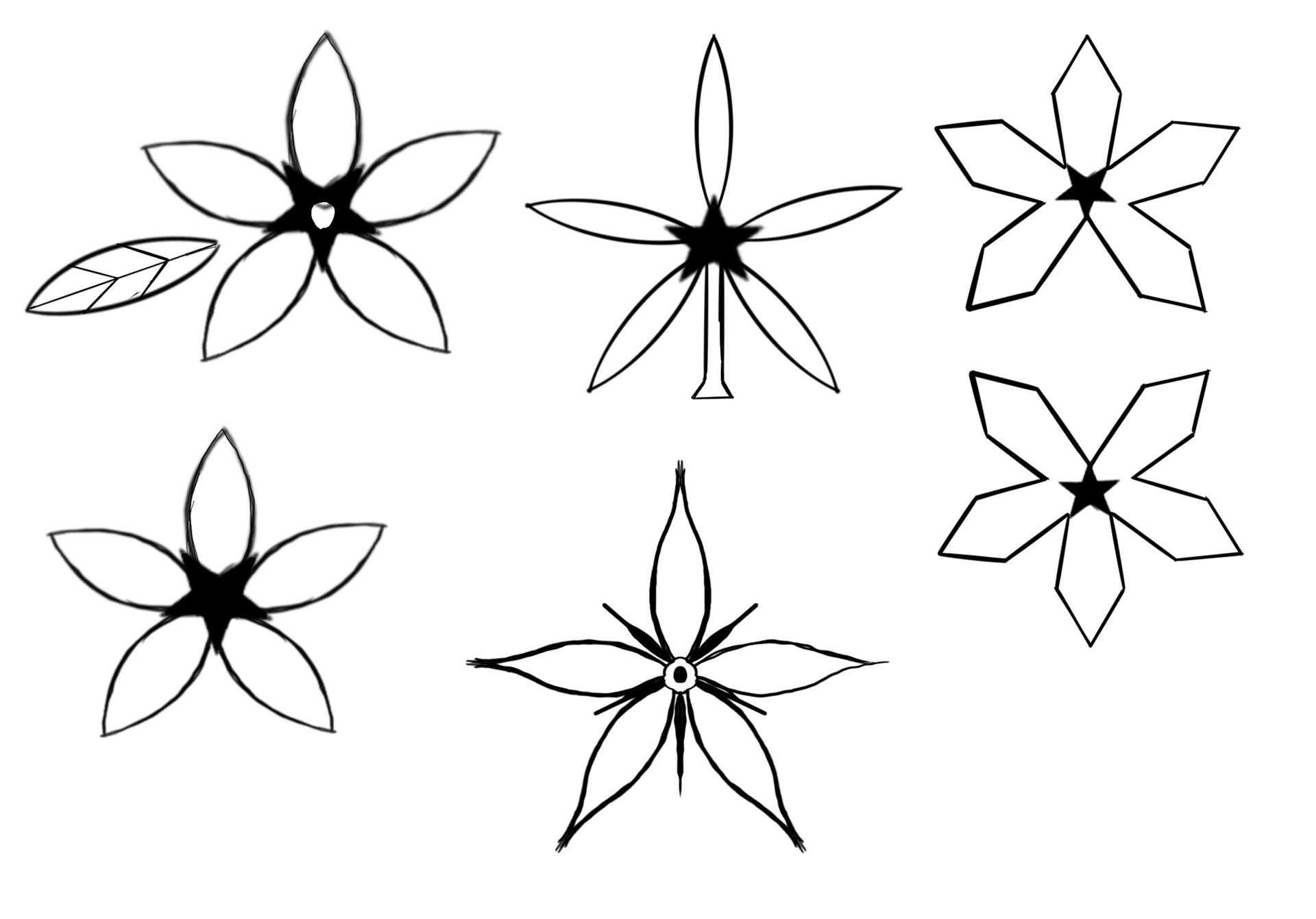For the sketches there was several different attempts to simplify the shape of the flower. Out of the six iterations I ended up with the second sketch.