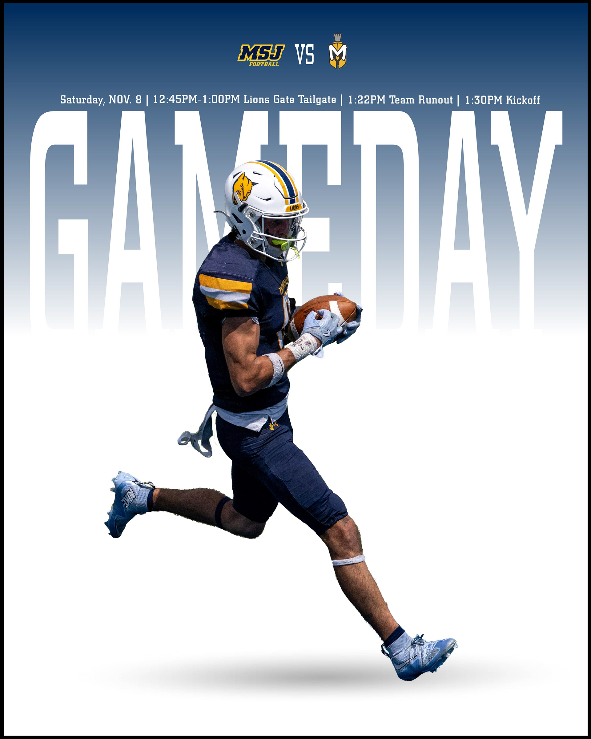 In the final stage, I created five distinct graphic designs that best represent MSJ Football and effectively communicate the team’s identity to audiences viewing these images online.